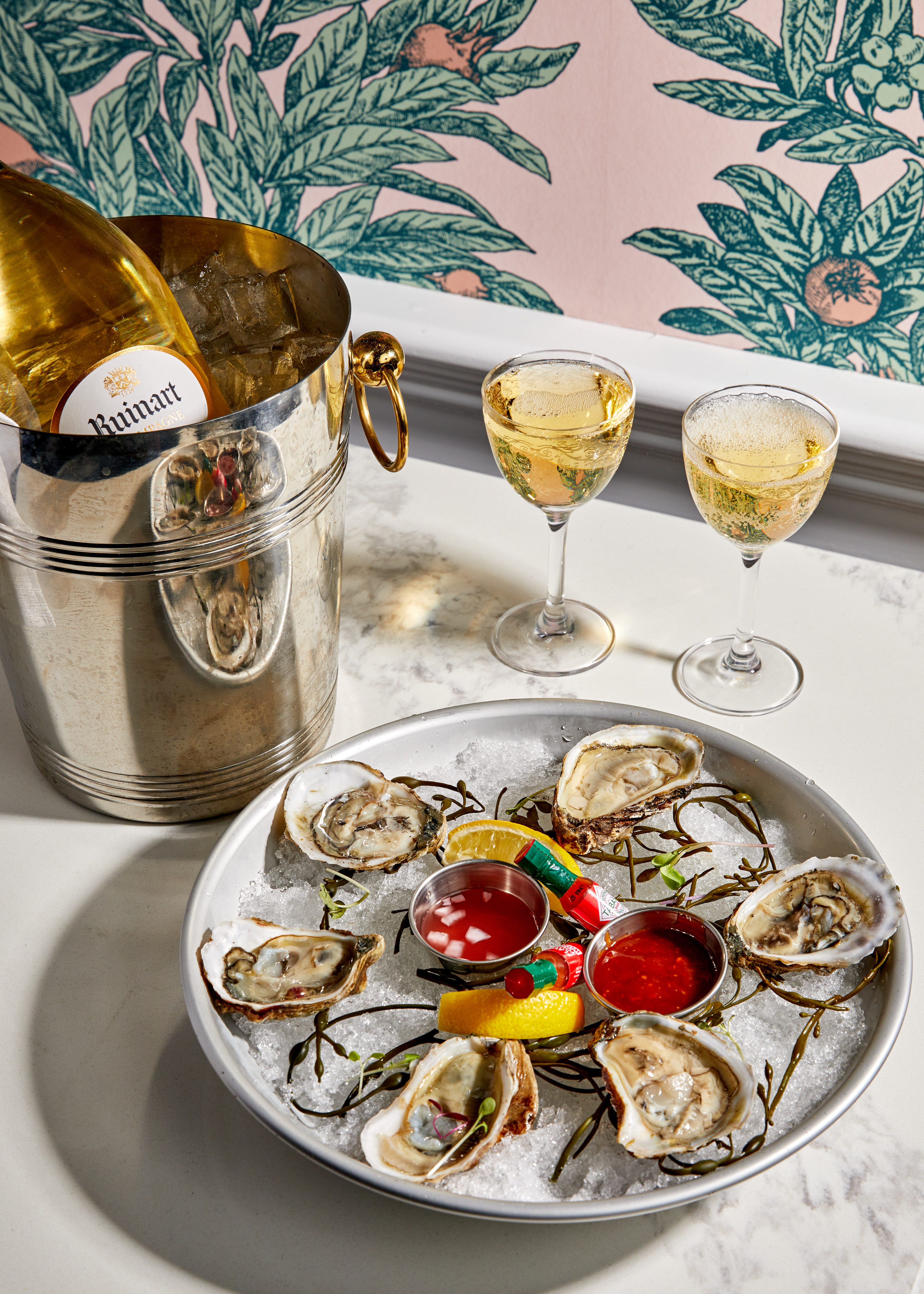 sriracha mignonette, lemon, chipotle cocktail sauce